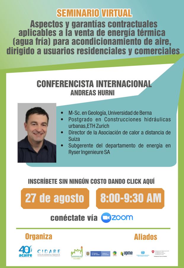 Los invitamos a inscribirse y participar en el Seminario virtual «Aspectos y garantías contractuales aplicables a la venta de energía térmica (agua fría) para acondicionamiento de aire, dirigido a usuarios residenciales y comerciales», el próximo 27 de agosto de 8.00 a 9.30am.